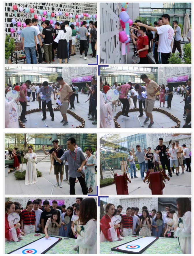 猜灯谜即经典!摊位前人头济济,各种搞怪的答案都有。另一边又有狂扭屁股的人,百投不中的投壶,新颖的冰壶游戏也引人注目。大家都玩心大发,尽情释放活力,玩得不亦乐乎,拿到手工艺品的小伙伴们笑开了花儿呀~~