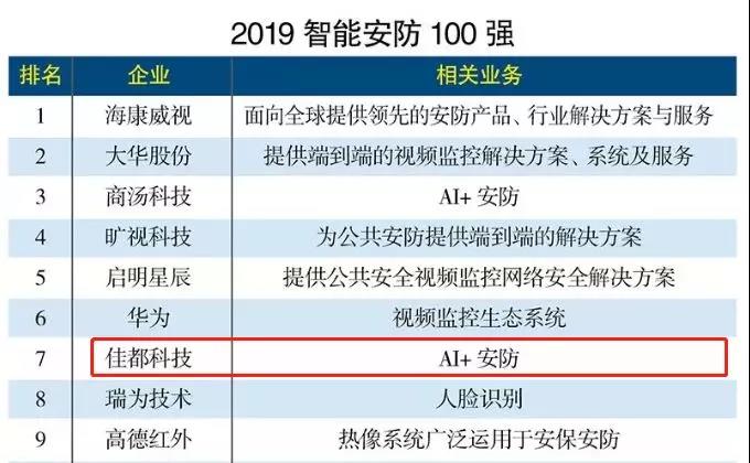 喜讯丨佳都科技荣登“2019智能安防100强”榜单第七!