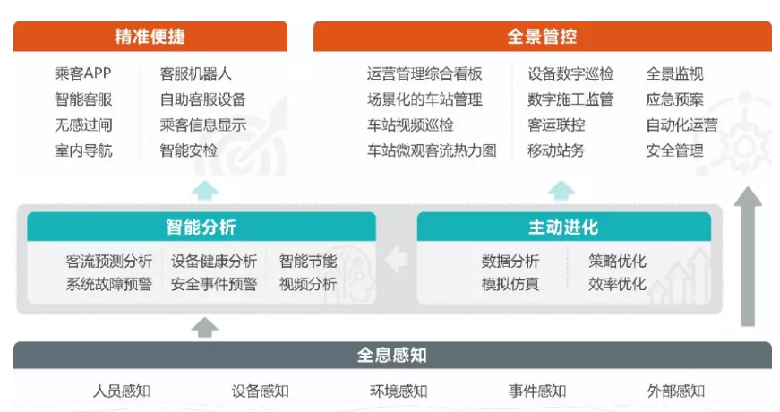 △ 主动进化。通过数据建模,采用深度学习模型,基于大数据分析车站大脑,最终实现智慧车站主动策略优化、效率优化的进化。