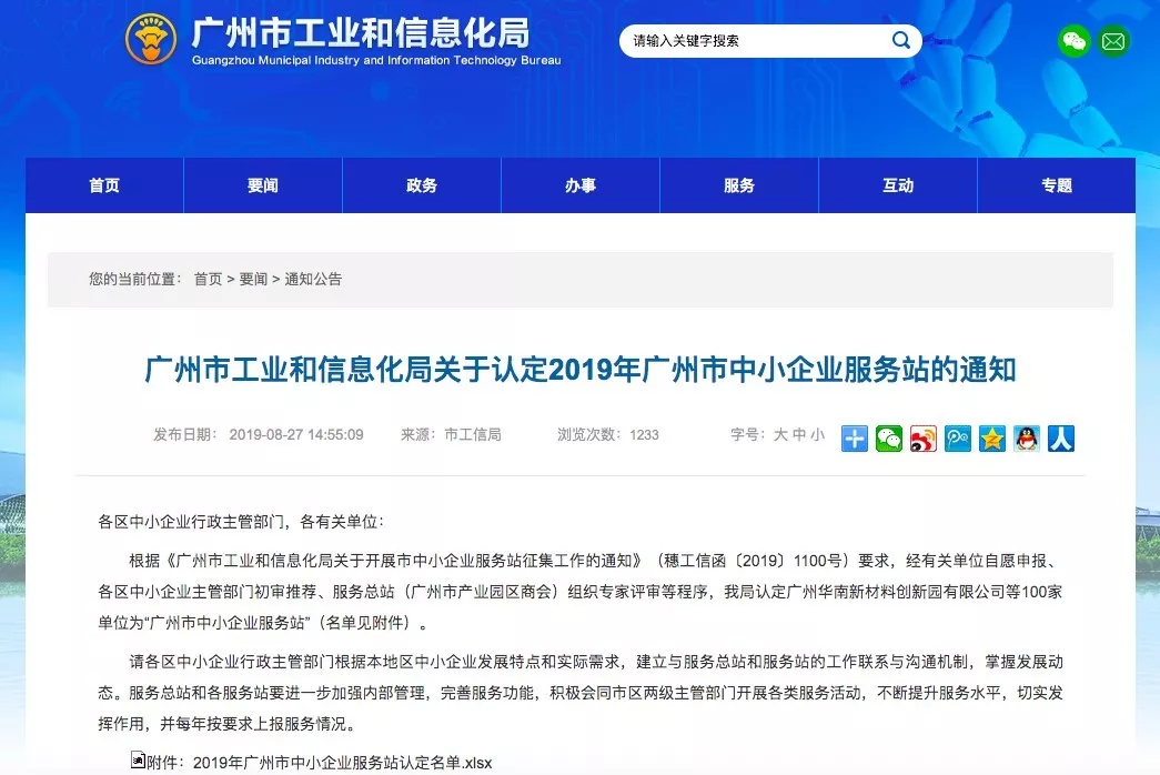 被市工信局认定为“2019年广州市中小企业服务站”!